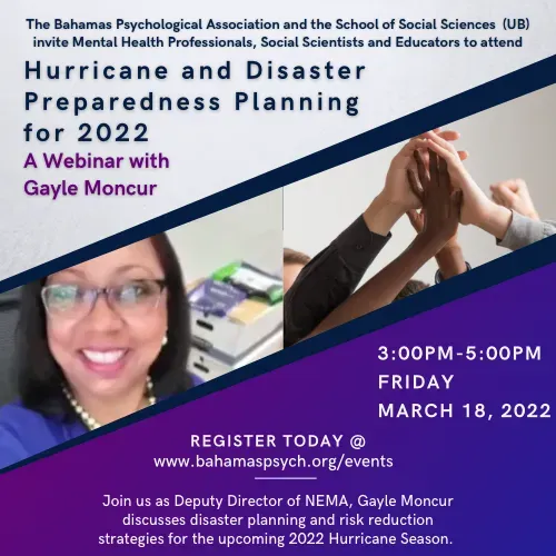 The Bahamas Psychological Association or BPA invites all of its members and other mental health professionals to attend this informational session hosted by the NEMA. In summary, this webinar will focus on the importance of disaster preparedness.