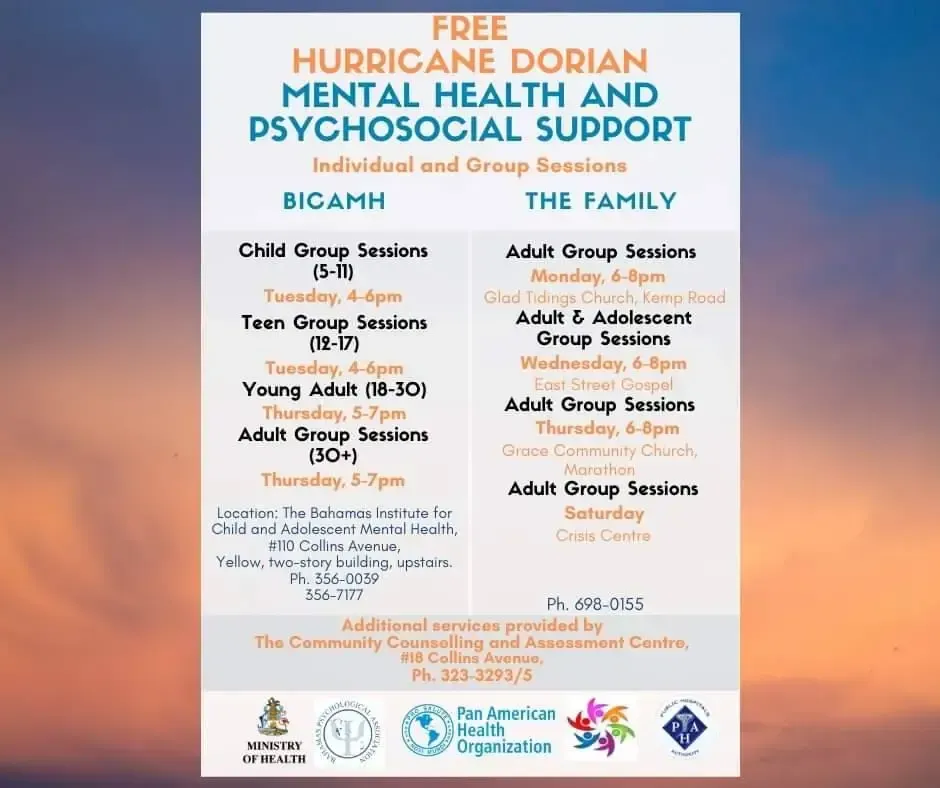 Free Hurricane Dorian-Related Mental Health and Psychosocial Support. Call for more information.